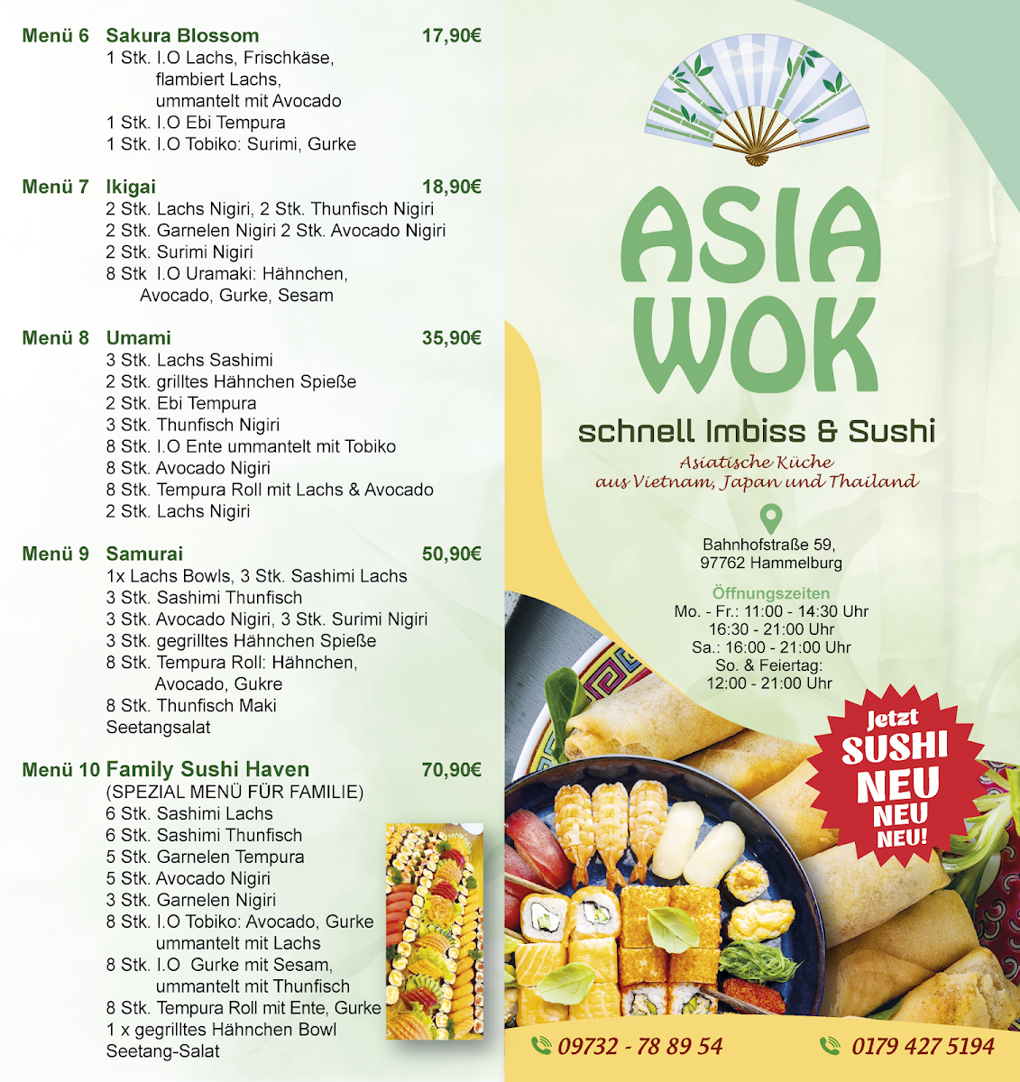 Welcome to Asia Wok - Bahnhofstraße 59, a delightful Vietnamese restaurant nestled in the heart of Hammelburg. Known for its vibrant flavors and generous portions, Asia Wok invites you to explore a menu filled with culinary treasures. Diners rave about the tempura and inbaked chicken, both of which exemplify the eatery's commitment to quality and taste. Guests appreciate the friendly atmosphere and the prompt service, making every visit a pleasant experience.